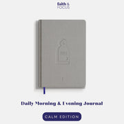 Faith & Focus is a 90-day morning and evening guided journal to bring spirituality, success and structure to your everyday life. It’s designed to help you consciously connect to Allah and your goals and overcome overwhelm, distractions and feeling spiritually incomplete. Inspired by timeless wisdom in the Qur’an. Backed by modern psychology. Built for beginners.
