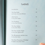 Will two clans in Ethiopia make peace by throwing their most precious possessions in the river? Can a poor Palestinian shepherd show a rich sultan the value of true kindness? Or will an angel in Afghanistan find a way to turn the selfish Emir into a caring ruler? Buried treasure and an act of forgiveness reunite a father and daughter in Sudan while a camel is the key to choosing a kind and fair ruler for the kingdom of Yemen. Hear the Syrian story of the woodcutter and the lion to discover the meaning of friendship, and then follow nine courageous Uighur princesses of Kashgar, as they bring peace to their kingdom without any fighting.
